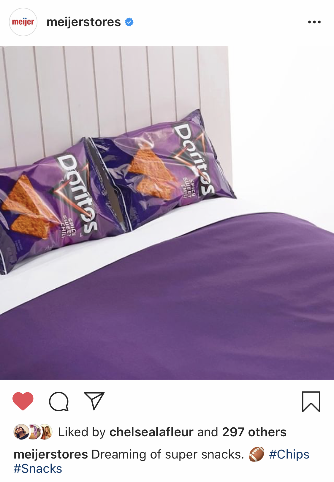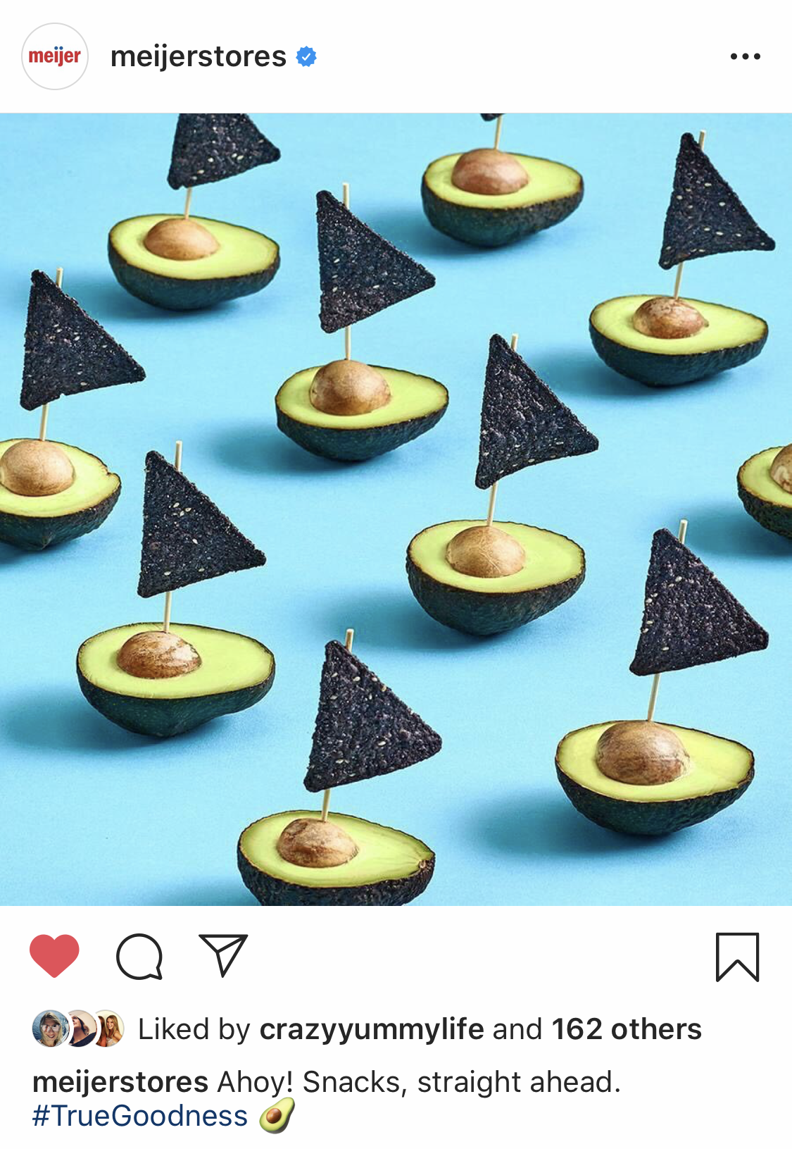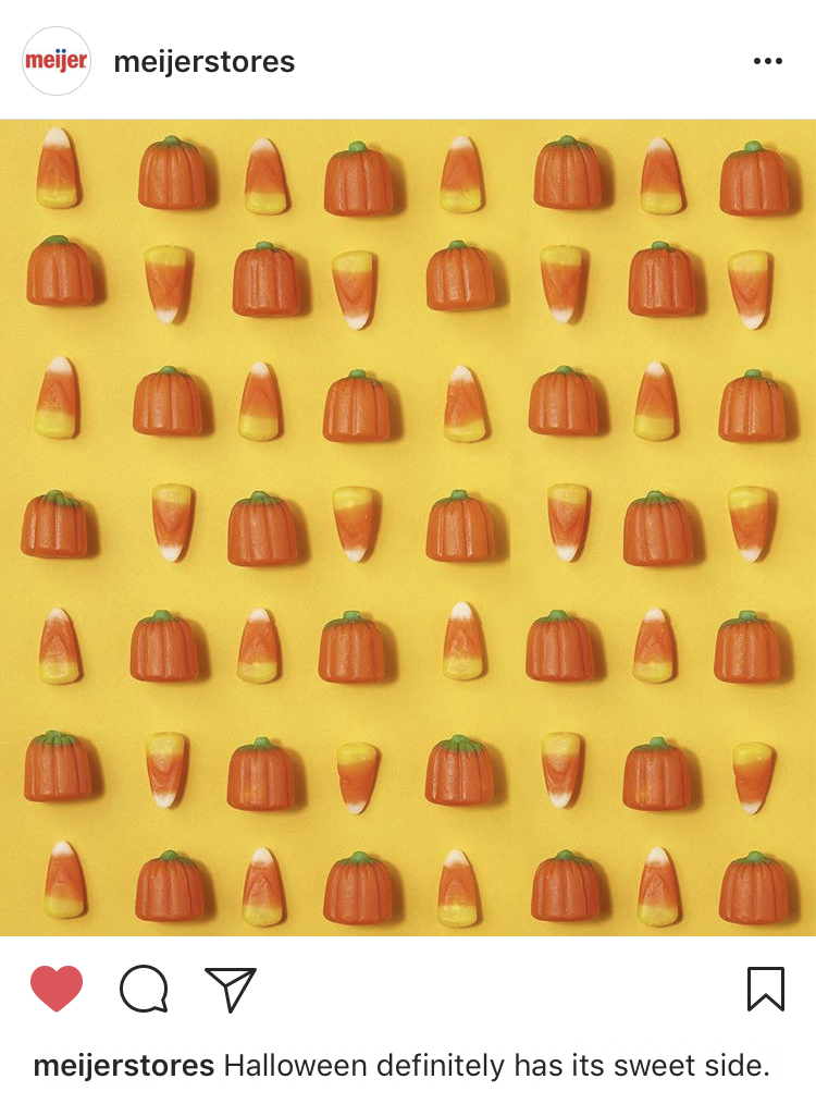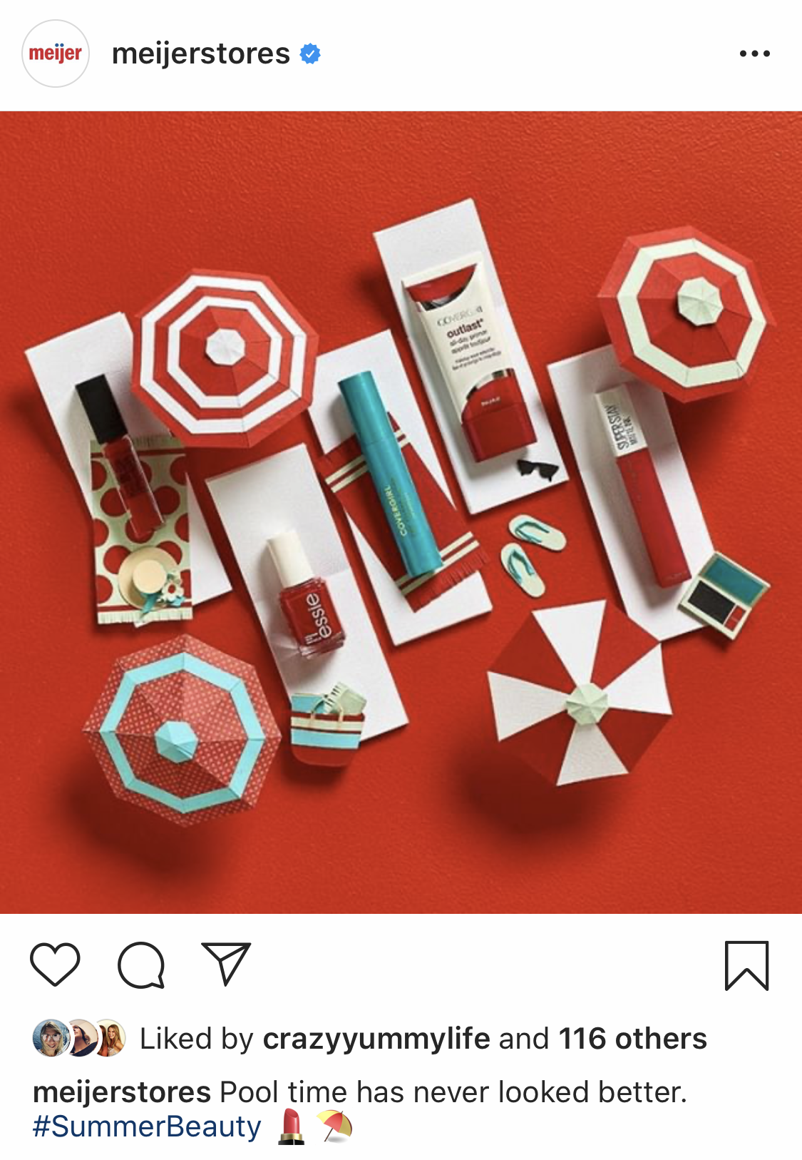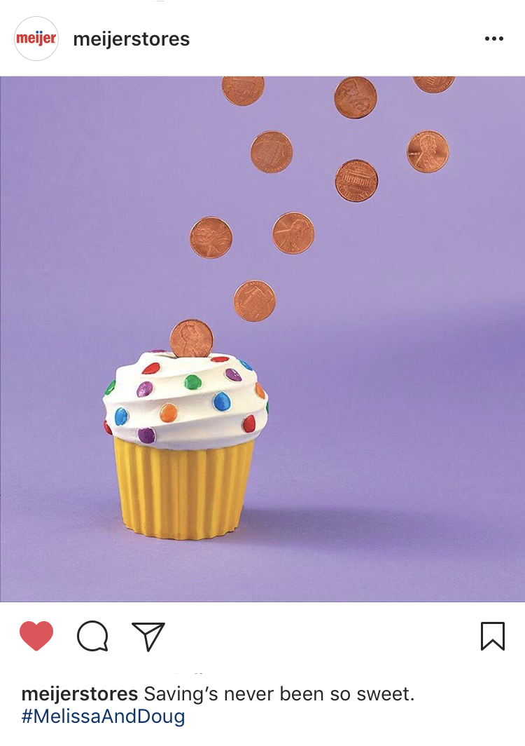 These social media posts span across several departments and campaigns, but are tied together by aesthetic. Bright, colorful backgrounds and minimal propping help make these posts stand out in social feeds.