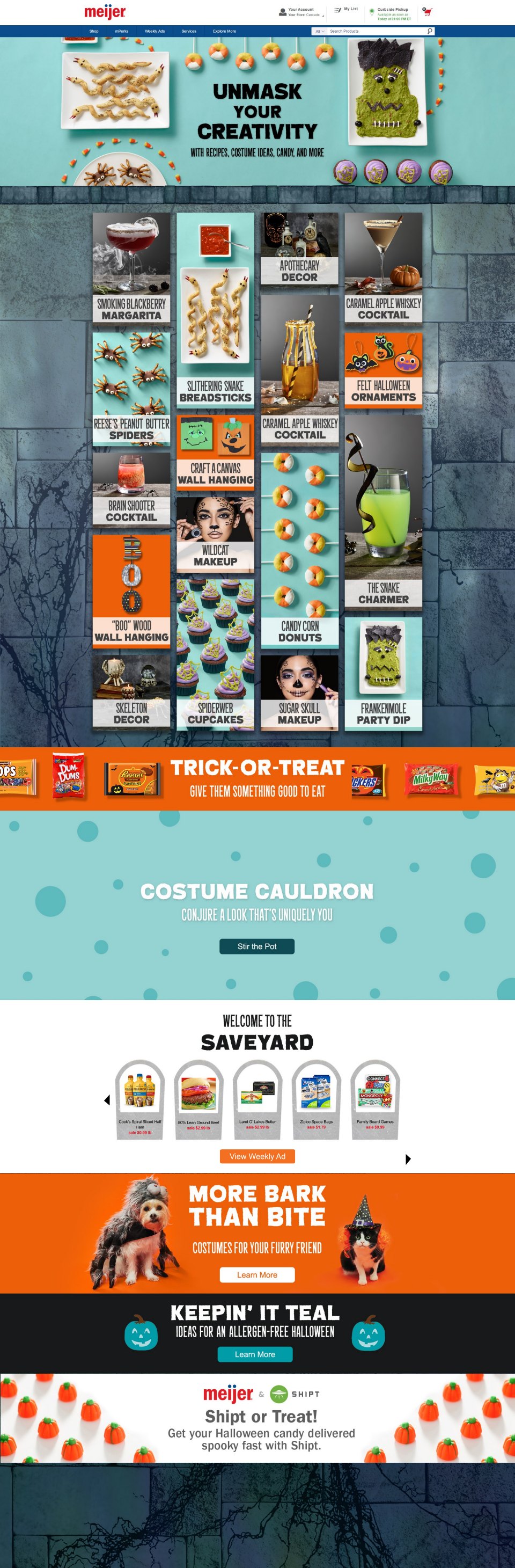 This Halloween campaign was all about inspiring creativity in our customers with recipes, crafts, costume DIY’s, and makeup tutorials. The team wanted to create a “Pinterest-like” experience to get customers in the correct mindset once they visited the landing page. We also crafted an interactive element called the “costume cauldron”. When you "stirred the pot," you’d be taken to a costume DIY/hack with instructions and shopping elements.